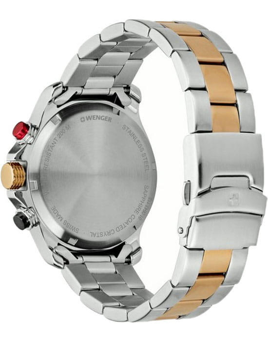 Мужские швейцарские часы с хронографом Wenger 01.0643.113, кварцевый механизм с высокой точностью. Класс водозащиты: 200 метров, позволит плавать, нырять и заниматься другими водными видами спорта. Корпус часов изготовлен из стали, разноцветного цвета.