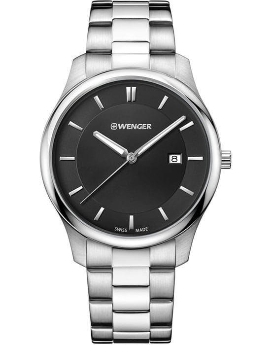 Мужские швейцарские часы с календарём Wenger 01.1441.104, кварцевый механизм с высокой точностью. Класс водозащиты: 30 метров, позволит защитить корпус от случайных брызг или капель дождя. Корпус часов изготовлен из стали, цвета.
