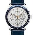 Мужские наручные часы-хронографХронографФункция позволяет измерять отрезки времени с особой точностью: часы, минуты, секунды. Верным признаком хронографа является наличие на циферблате 3 дополнительных окошек-счётчиков. Zeppelin New York 88781 сочетают в себе классический дизайн и надежность современных технологий. Модель обладает круглым корпусом диаметром 42 мм, изготовленным из нержавеющей стали, что обеспечивает высокую устойчивость к внешним воздействиям. БезельБезельВнешний ободок, закрепляющий стекло. В спортивных часах так называется поворотное кольцо с делениями на циферблате, выполняет роль таймера – замеряет отрезки времени на шкале. Неподвижный безель – элемент декора. Однонаправленно вращающийся безель на дайверских часах позволяет фиксировать моменты погружения и выныривания на поверхность. с IP-покрытиемIP-покрытиеМетод ионного напыления. Демонстрирует повышенную устойчивость к истиранию, окислению и химическим веществам. Под воздействием высокого давления и температуры около 1500°C молекулы металла надёжно соединяются с частицами корпуса часов.. Браслет выполнен из натуральной кожи с классической застежкой, гарантирующей комфортное ношение и стильный внешний вид. Белый циферблат оснащен шкалой тахиметраТахиметрРазмеченная шкала, располагается на ободке или безеле часов. Тахиметр позволяет рассчитать скорость на определённом участке пути, расстояние измеряется в километрах или милях., малыми циферблатами для функций хронографа, а также окном даты. Для защиты используется минеральное стеклоМинеральное стеклоМинеральное стекло представляет собой искусственно выращенный минерал кварца. Такое стекло отличается особой устойчивостью к повреждениям и царапинам. Уступает по некоторым качествам сапфировому стеклу. с антибликовым покрытиемАнтибликовое покрытиеСлой оксида металла в 0,13-0,3 микрон, благодаря которому стекло часов не бликует и не отражает свет. Антибликовое покрытие уменьшает отражение света в 10 раз, обеспечивая отличную читаемость показателей циферблата., обеспечивающее прочную защиту от царапин и оптимальную видимость циферблата даже при ярком свете. Часы работают на кварцевом механизме, который гарантирует точное время без необходимости подзаводки. Водонепроницаемость часов достигает 5 атмосфер (50 метров), что позволяет использовать их в повседневной жизни, однако не рекомендуется для плавания или дайвинга.